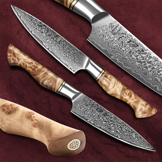 Un couteau de qualité est un investissement à long terme. Les prix peuvent varier de 40€ pour un bon couteau d'entrée de gamme à plus de 200€ pour un modèle haut de gamme comme nos couteaux Damas. L'idéal est de commencer par un bon couteau polyvalent dans votre budget, puis d'élargir votre collection progressivement selon vos besoins et votre expérience.
